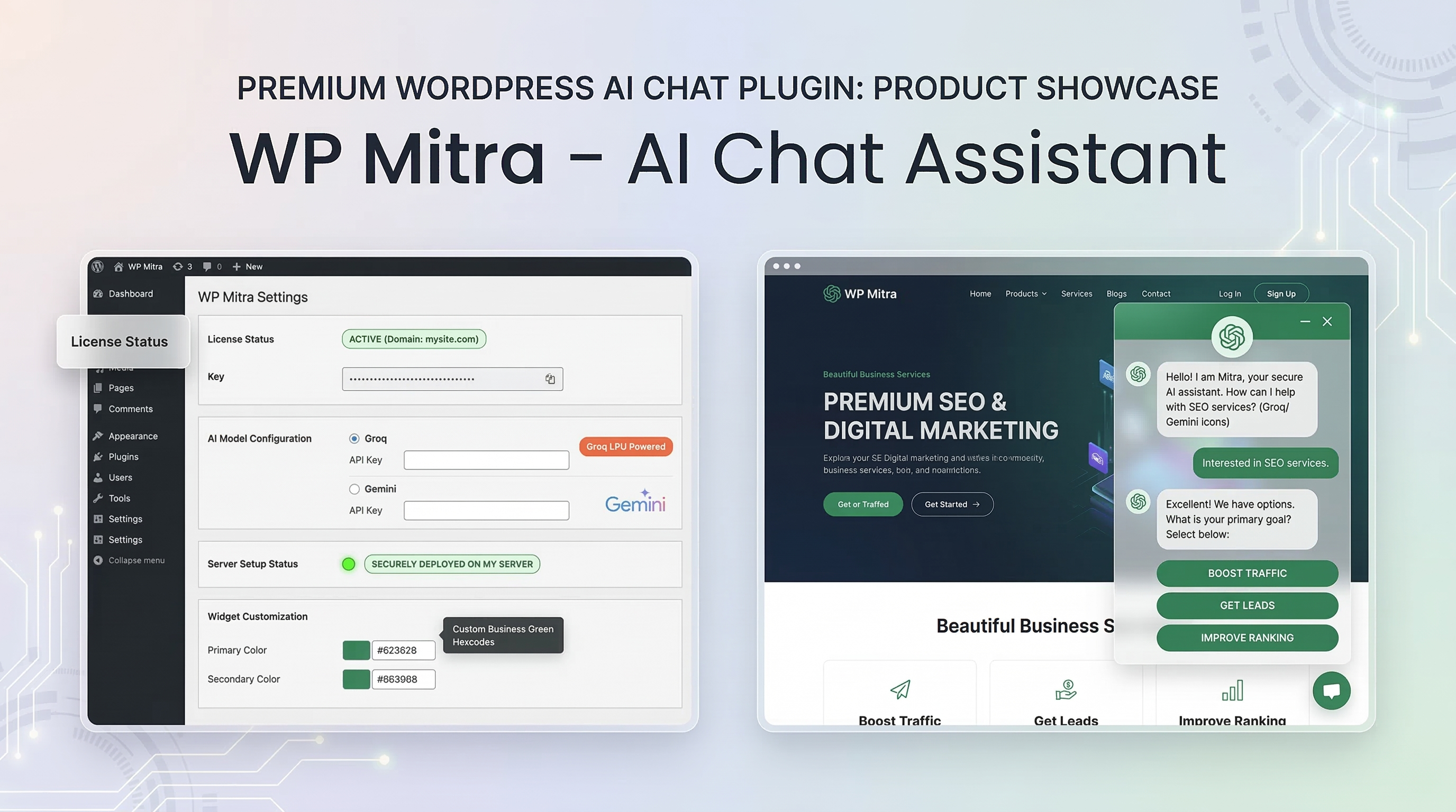 WP Mitra currently supports Groq and Gemini.